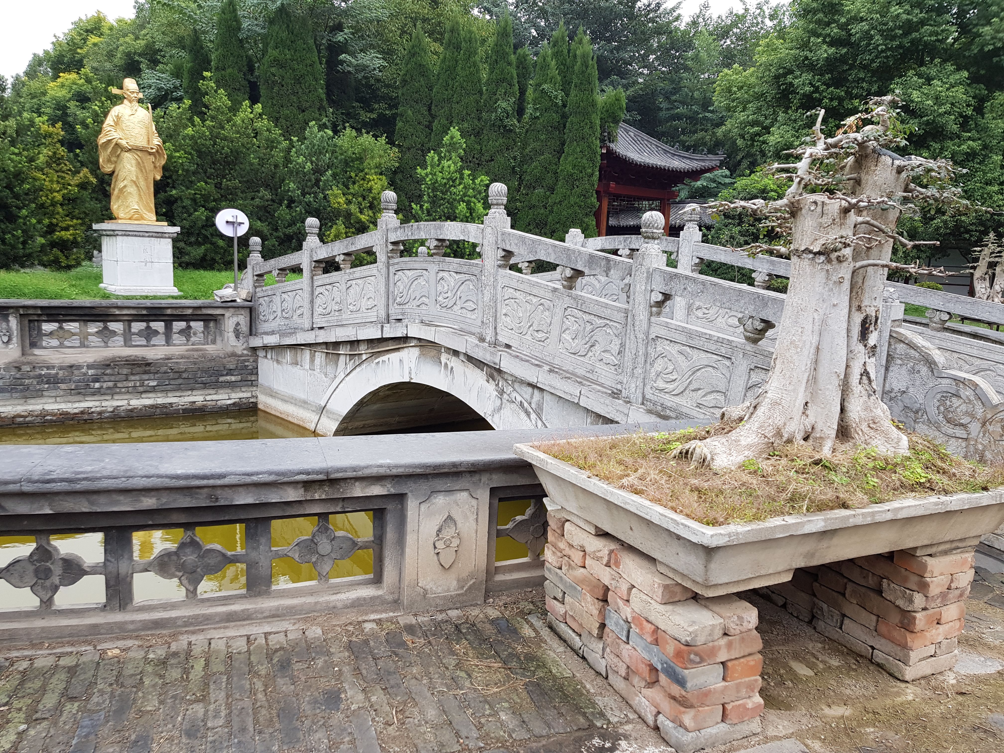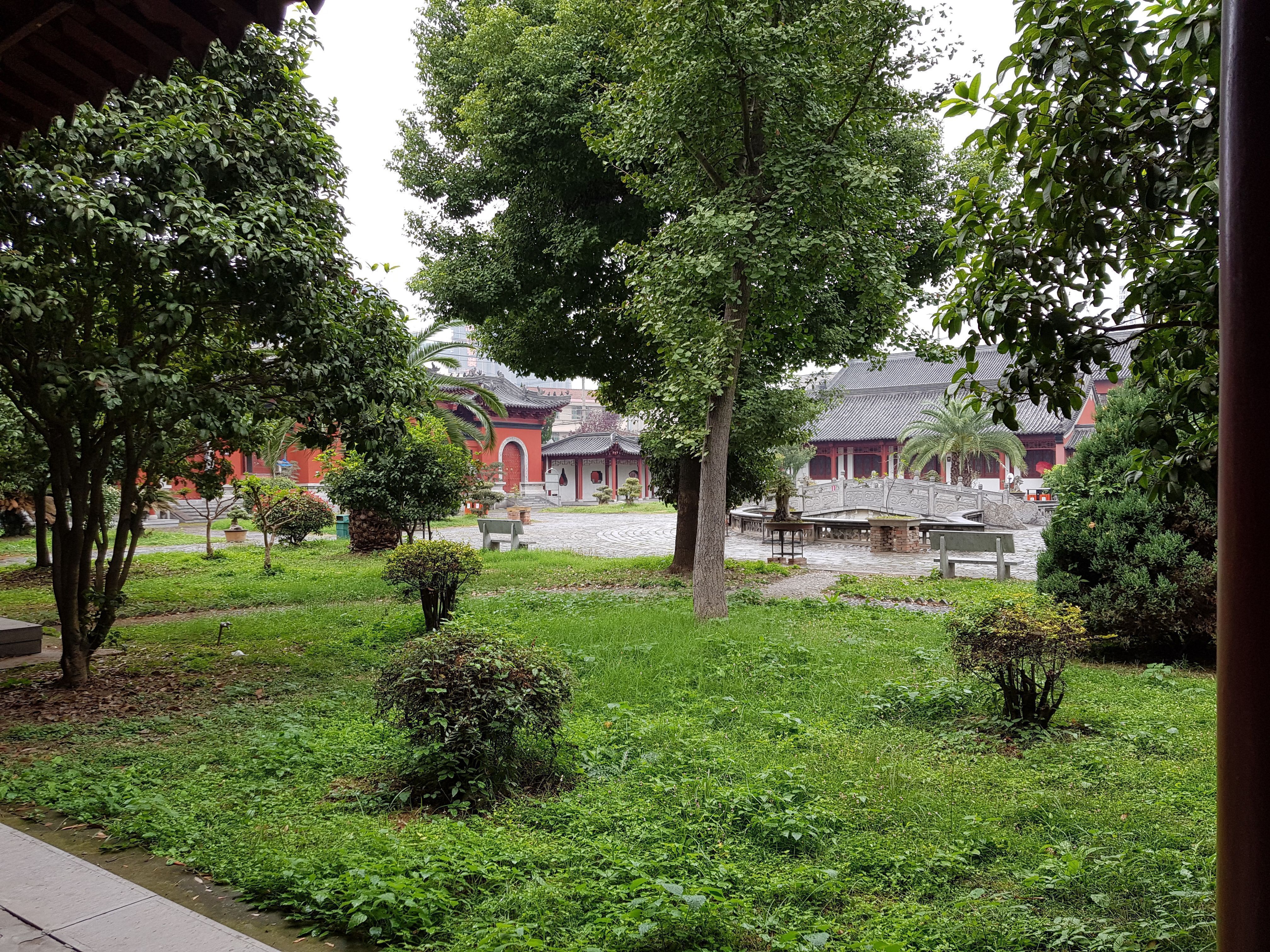 De entre las infinitas cosas que me sorprenden de China (recalquemos lo de «infinitas»), una es lo poco que el contexto delata a veces (ya veréis, al final del artículo, la estampa a la que me refiero en este momento). Otra cosa es su capacidad de hacer bello algo con pocos recursos: quizá sea que al resultarme exótico lo encuentre más bonito de lo que un paisano oriental podría apreciarlo, pero, sin duda, su utilización de la naturaleza (árboles, césped, arbustos, ordenados de la manera precisa) en combinación con los colores apropiados (rojo anaranjado y negro en contraste con tonos claros, por ejemplo) y la sencillez de la distribución (un poco más y me saco el máster en opinóloga en cosas que no entiendo) hacen de cualquier pequeño recinto algo atractivo para el visitante, pese a su humildad.